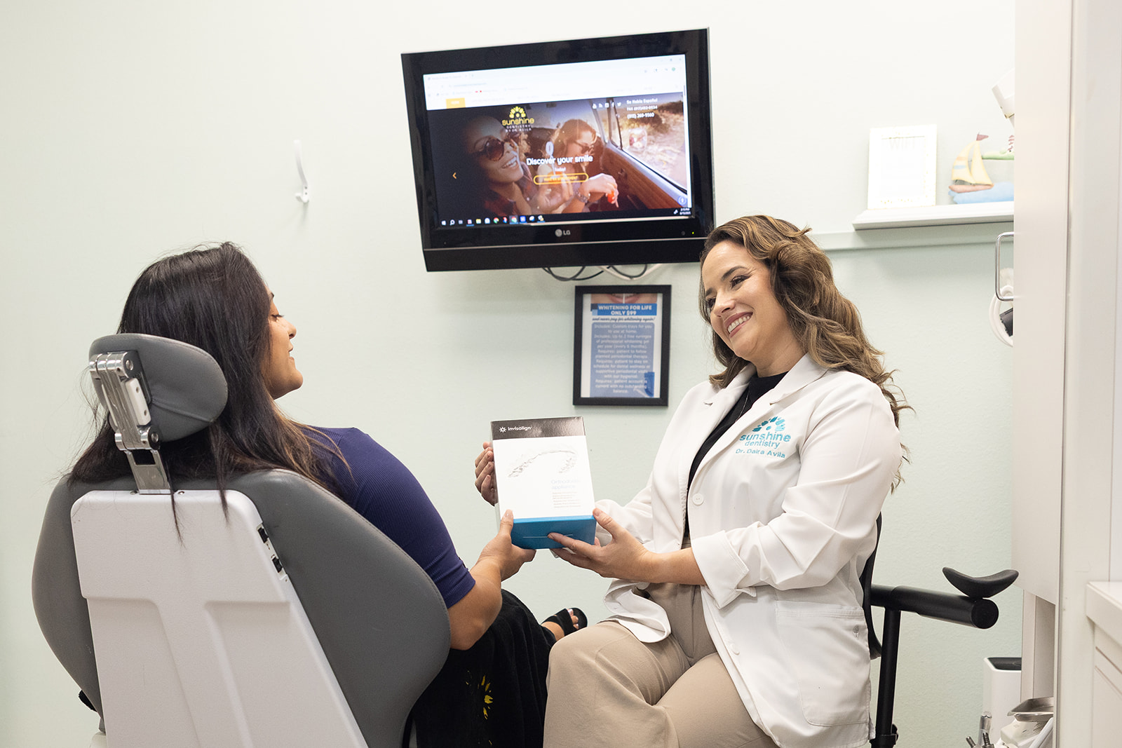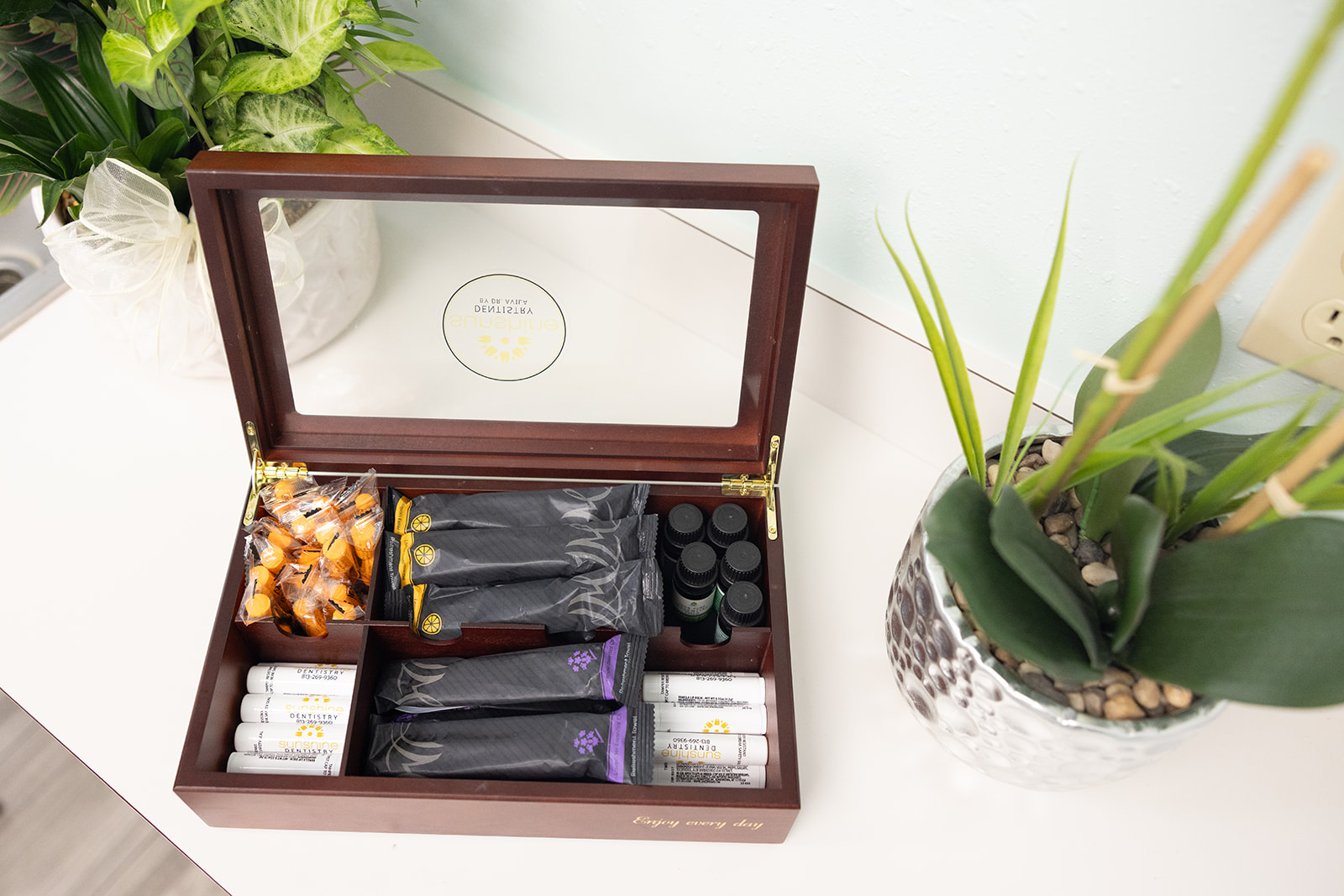 In addition to our advanced technology, Sunshine Dentistry is dedicated to providing a comfortable and inviting atmosphere designed to put you at ease from the moment you arrive. Our waiting room is a welcoming space where you can relax with a fresh cup of coffee or a refreshing drink from our station. We also offer a range of amenities to enhance your experience in the dental chair. Every treatment room is equipped with a TV for your entertainment, and you can choose from our comfort menu, which includes options like lip balm, soothing aromatherapy, and cozy blankets to make your visit as pleasant as possible.